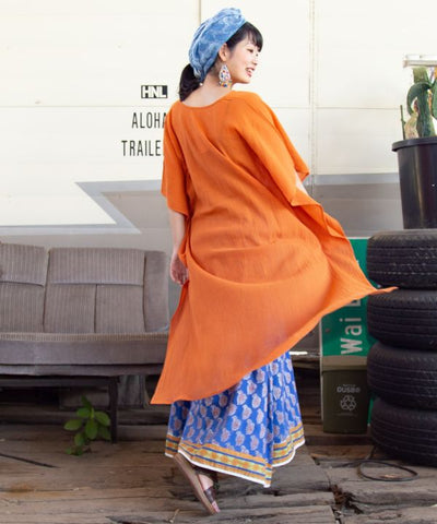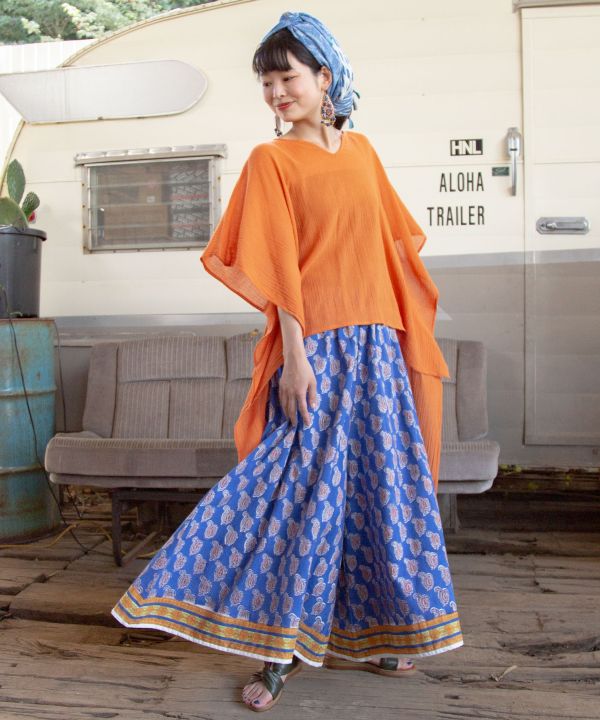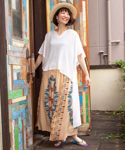 Long-selling high-low hem top. The bold high-low design which you won't find anywhere else, will also cover your hip line. Made of light and breathable Indian cotton, the way it sways in the wind will bring out your unique charm.