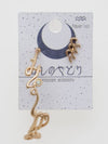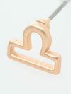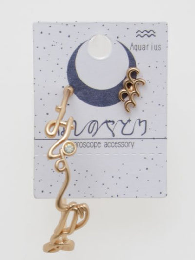 These earrings are designed with each of the 12 constellations in broken Hiragana. The key point is that each is accompanied by its own star sign stone. The fact that each side is a different size also adds a coordinating accent.