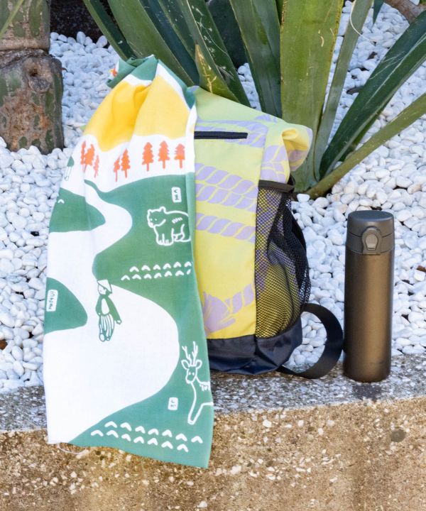 This is a lovely picture of mountain climbers and mountain creatures. Just looking at it makes you want to go to the mountains. Cotton, which is comfortable to the skin and dries quickly, is a strong friend to people living in hot and humid Japan. It can be used for decorating, wrapping, tying, and an infinite number of other purposes. It is fun just to imagine how to use them. It is also ideal for outdoor activities such as going outdoors or going out.