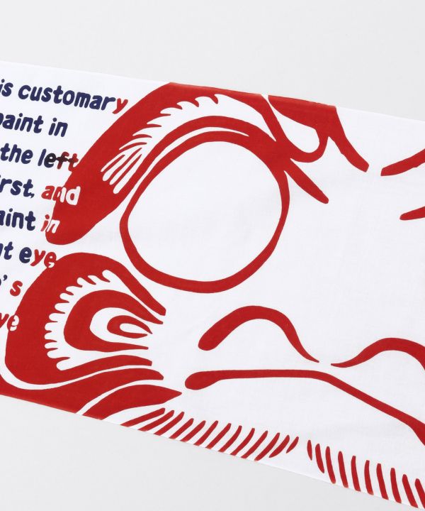 This Tenugui towel features an eye-catching Daruma face with a large impact drawn in the center. On the left and right sides are instructions in English on how to draw Daruma's eyes. It is also stylish, so we recommend displaying it in your room as an interior decoration.