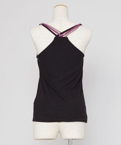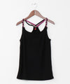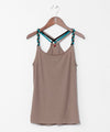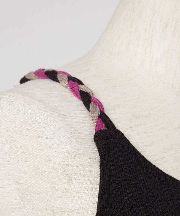 The back style is also unmistakable. The three-colored braids on this camisole add a coordinating accent to your outfit. The ribbed material is also very comfortable to wear. A piece you will want in different colors.