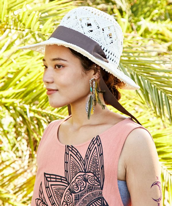 This ear hook features feathers in bohemian colors. Even if you don't have pierced holes, you can easily enjoy this accessory by simply hooking it on your ear. It gives a gorgeous impression around the face.