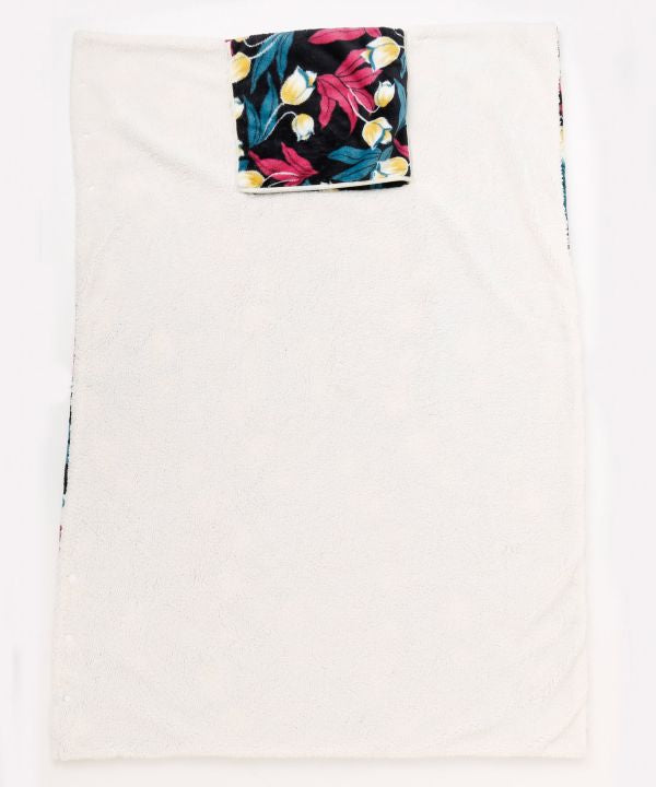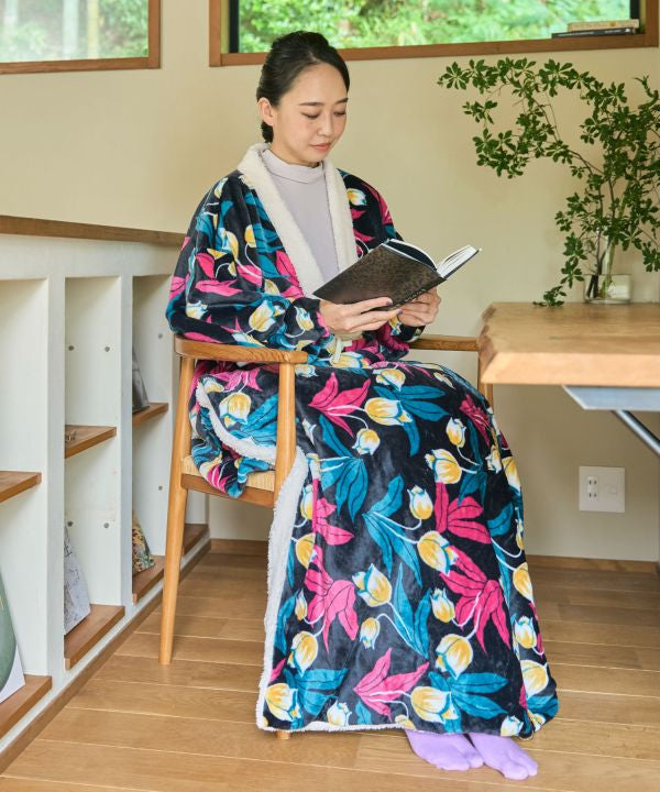 This boa blanket is designed with motifs of Japanese flowers and ukiyoe woodblock prints. It can be spread out as a lap blanket or tucked away in a pocket as a cushion. It is recommended not only for yourself but also as a gift for your loved ones.