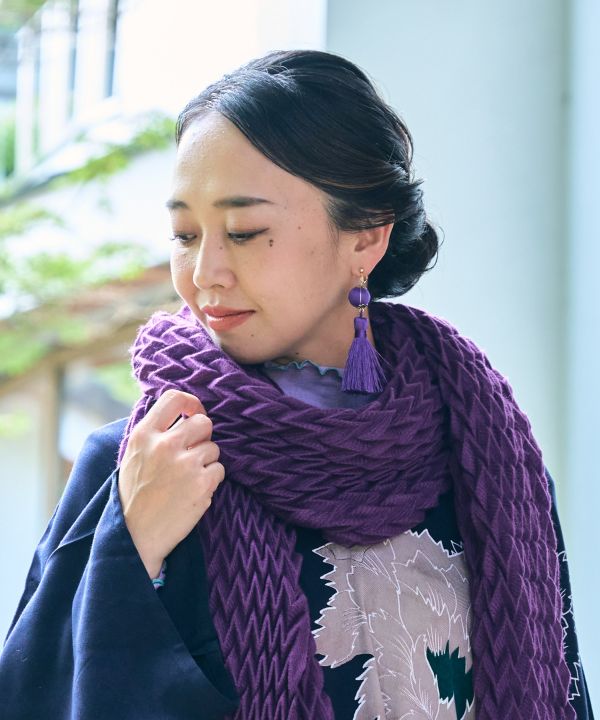 These earrings feature the traditional toy "Temari" and modern-looking tassels in simple Japanese colors. The use of lustrous threads adds a touch of glamour to even the simplest of outfits.