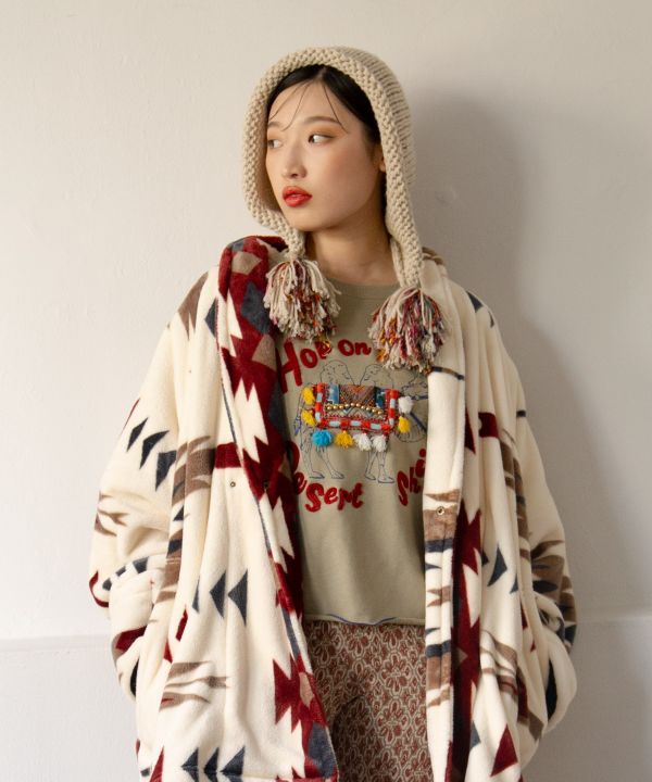 This hand-knit beanie is warm up to the ears and is inspired by flower vendors and flower markets in India and Nepal.