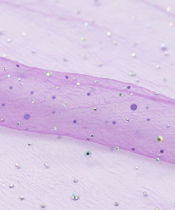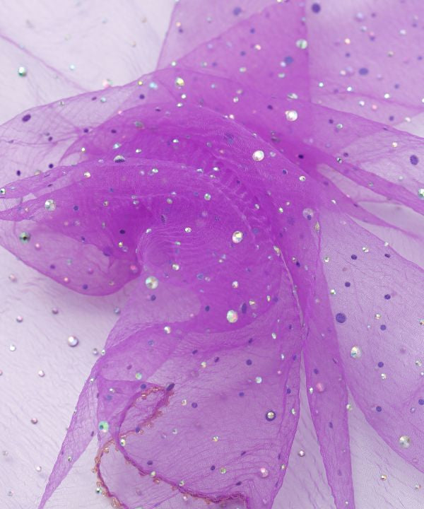 This lightweight easy-to-use scarf sparkles with fine beads. It is a versatile item that can be wrapped around the neck, added to hair arrangements, or attached to a bag.