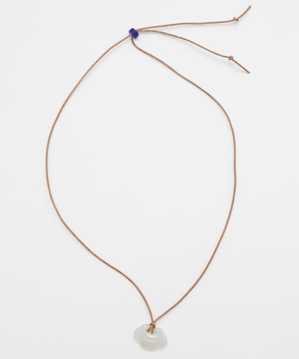 Since ancient times, jade has been known as the "stone that heals the soul," carried as a talisman by travelers along the Silk Road. Paired with synthetic leather, this long necklace embodies a natural yet modern style of prayer.
