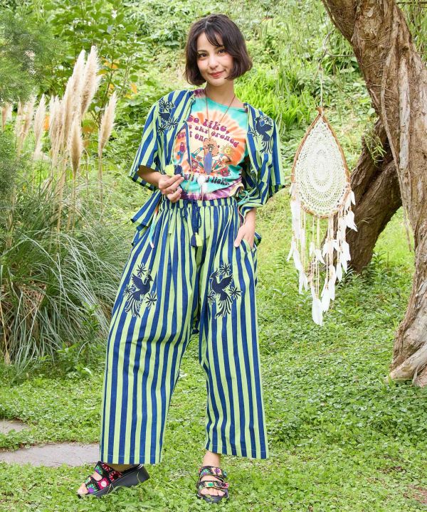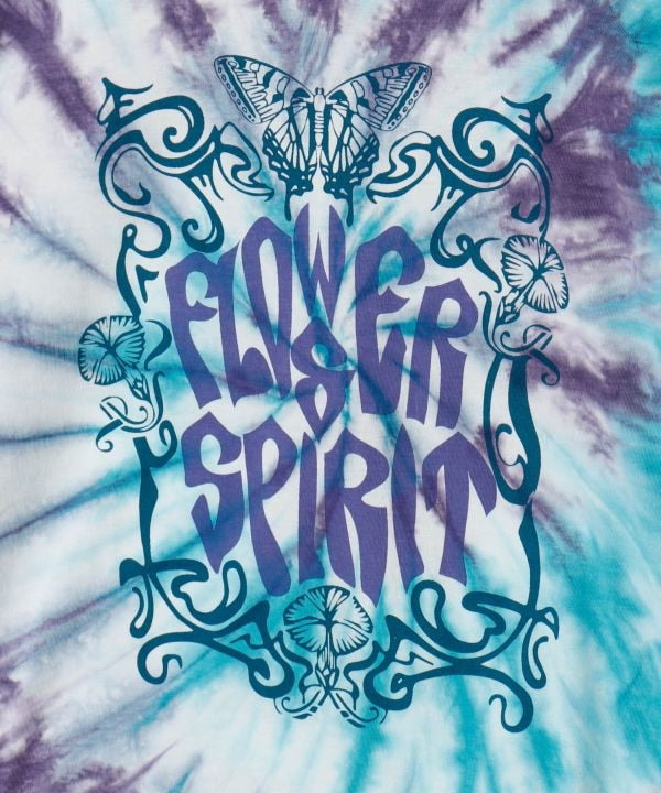 A tie-dye tank top brimming with hippie vibes. Its vintage-inspired texture and adjustable silhouette via side ties make it a standout piece. Available in three patterns: Butterfly Bus, and Mushroom.