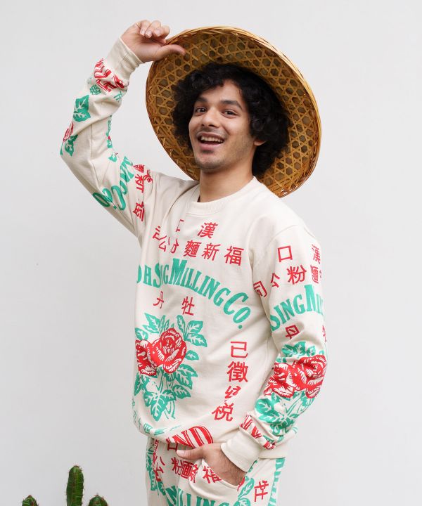Meticulously selected in Thailand. Men's sweatshirt top featuring Thai advertising designs. Crafted from richly textured fabric with a relaxed silhouette, this versatile piece is perfect for everyday wear. Ideal for creating a unique, one-of-a-kind style.